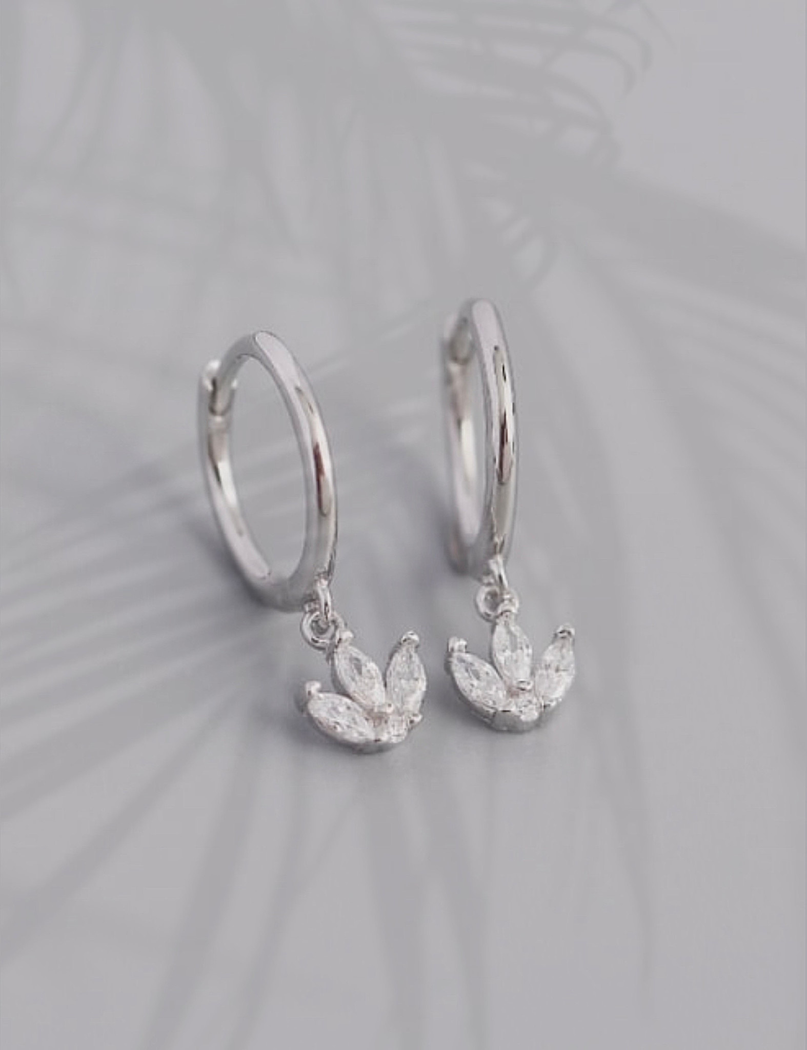 S'inscrireBoucles d'oreilles dormeuses de couleur argentée, ornées de breloques en forme de fleur diamantée.