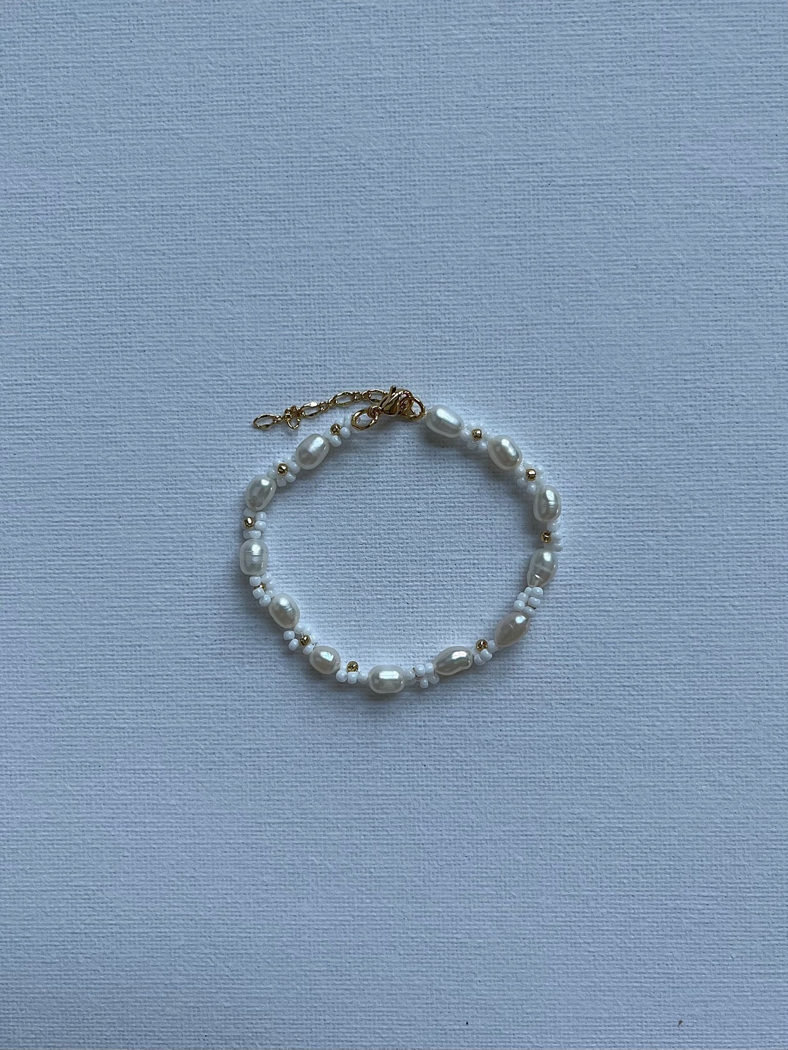 S'inscrireBracelet en perles multiples avec un fermoir et une chainette d'extension plaquée or.