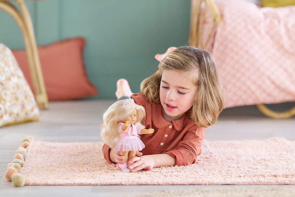 La mini poupée Rosy se glisse facilement dans un sac ou dans un cartable pour accompagner votre enfant tout au long de la journée.