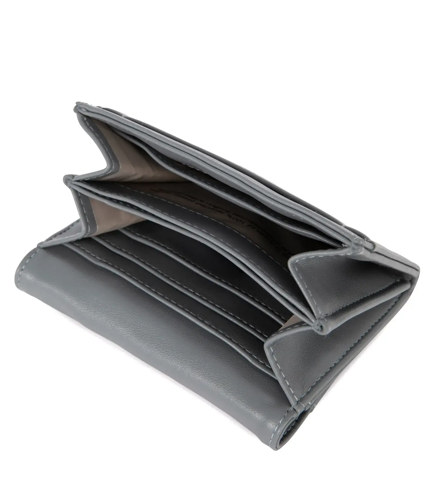 Portefeuille avec fermeture à rabat et poche zippée à l’arrière.