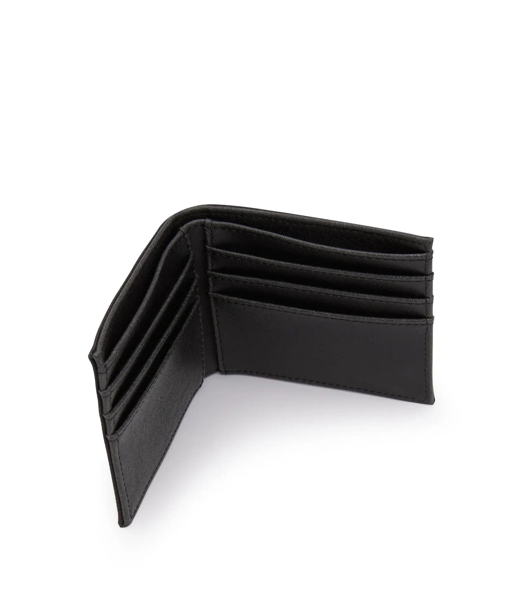 Portefeuille plié avec 6 fentes pour cartes, 1 compartiment pour billets et 2 fentes.