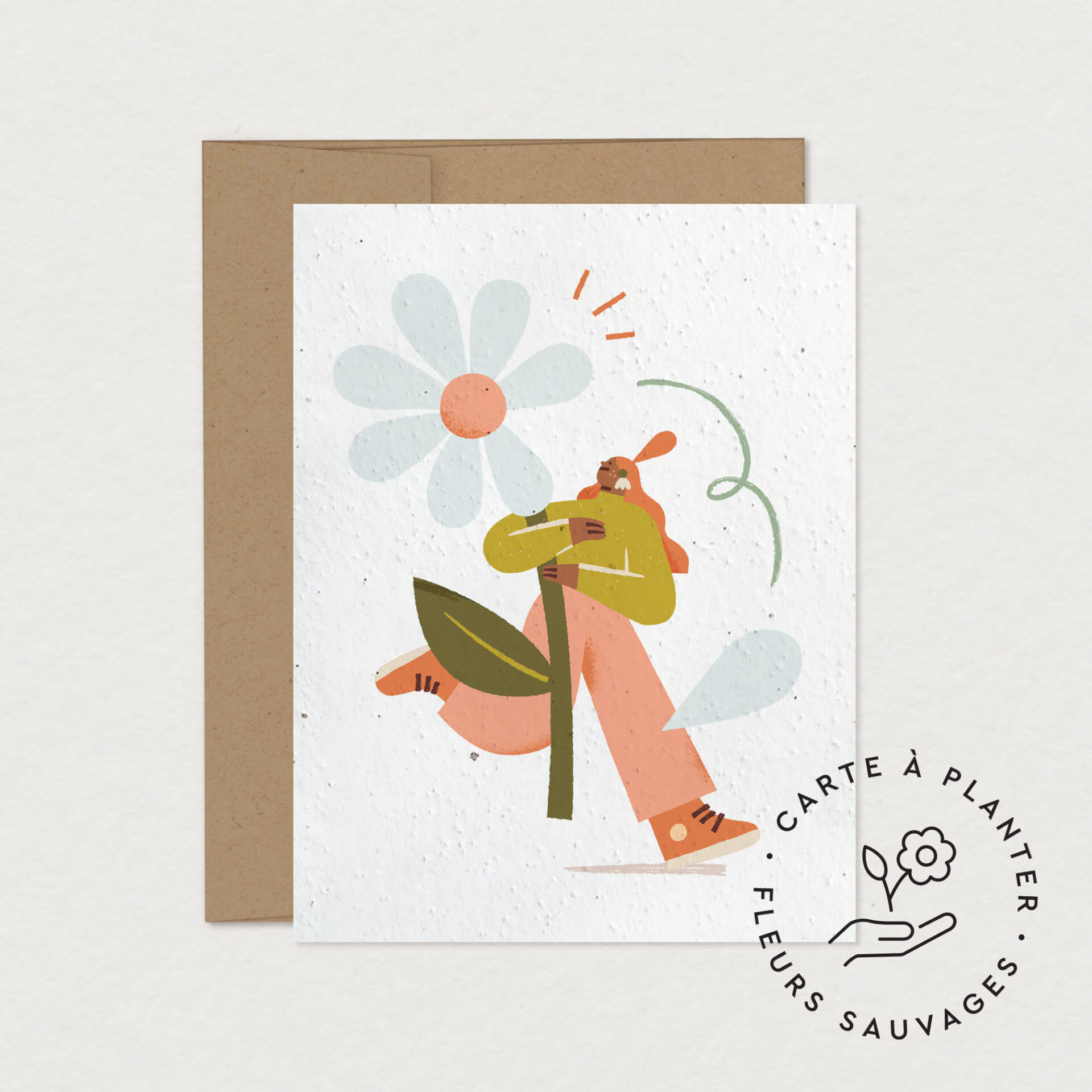 S'inscrireIllustrée par une talentueuse artiste italienne, cette carte représente une jeune fille et une grande fleur, symbole de douceur et de renouveau. Mais elle cache une surprise unique : fabriquée en papier ensemencé, elle peut être plantée pour donner naissance à de jolies fleurs sauvages.