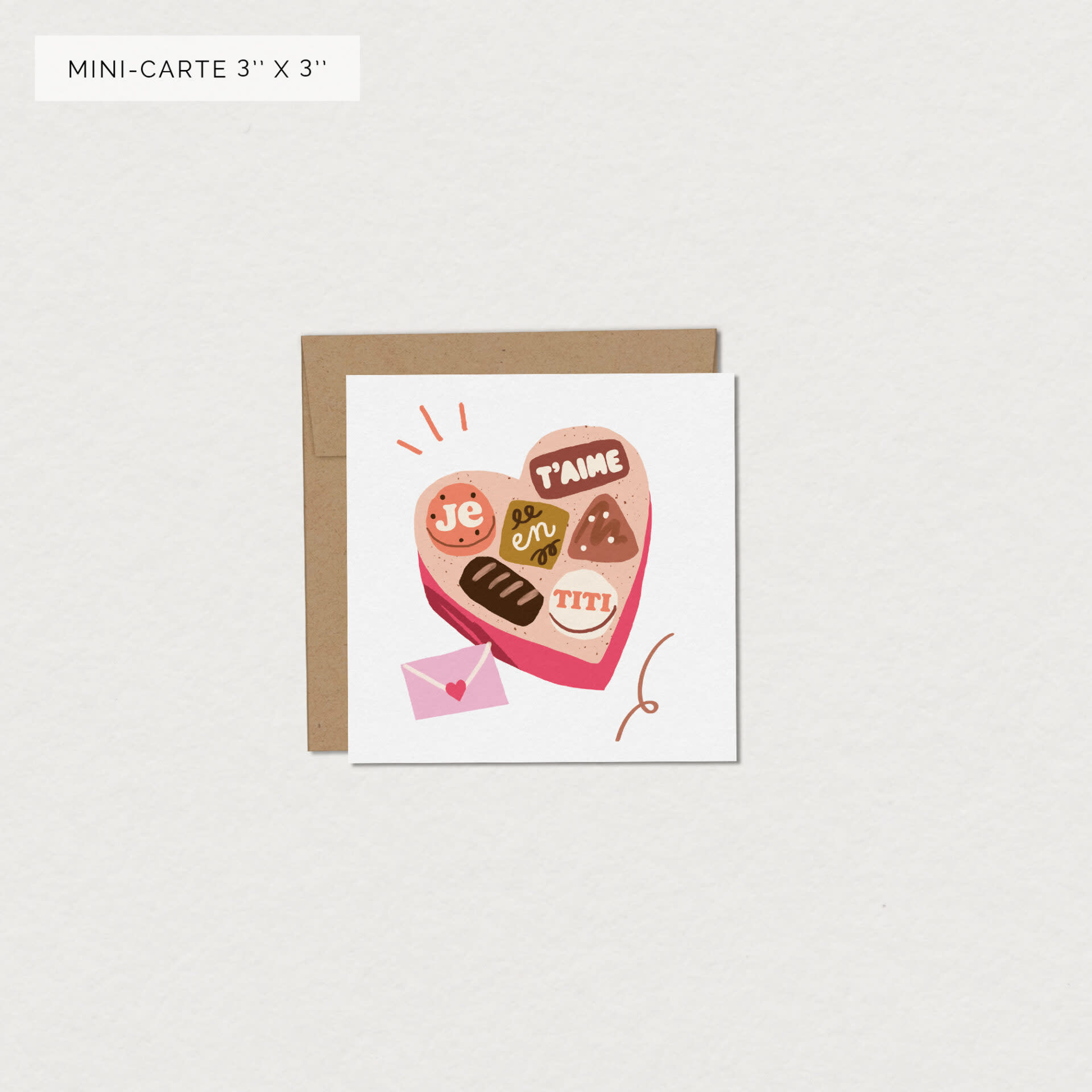 Parce que dire je t’aime mérite plus qu’un simple mot, cette carte illustrée en forme de boîte de chocolats célèbre l’amour avec douceur et gourmandise. Chaque petit détail évoque les attentions sincères, les mots tendres et les gestes qui font sourire.