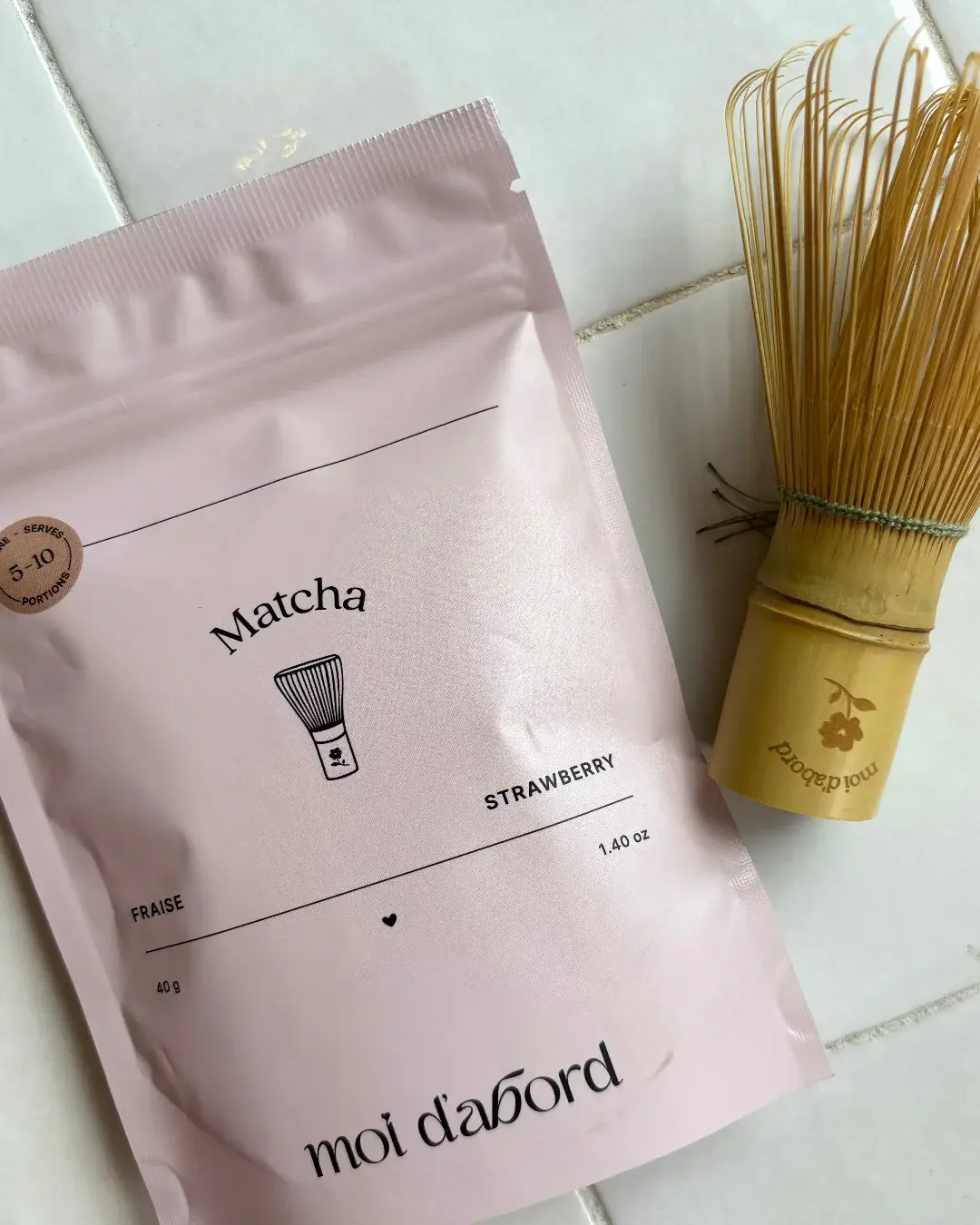 S'inscrireUn thé matcha délicatement parfumé à la fraise, alliant douceur et fraîcheur