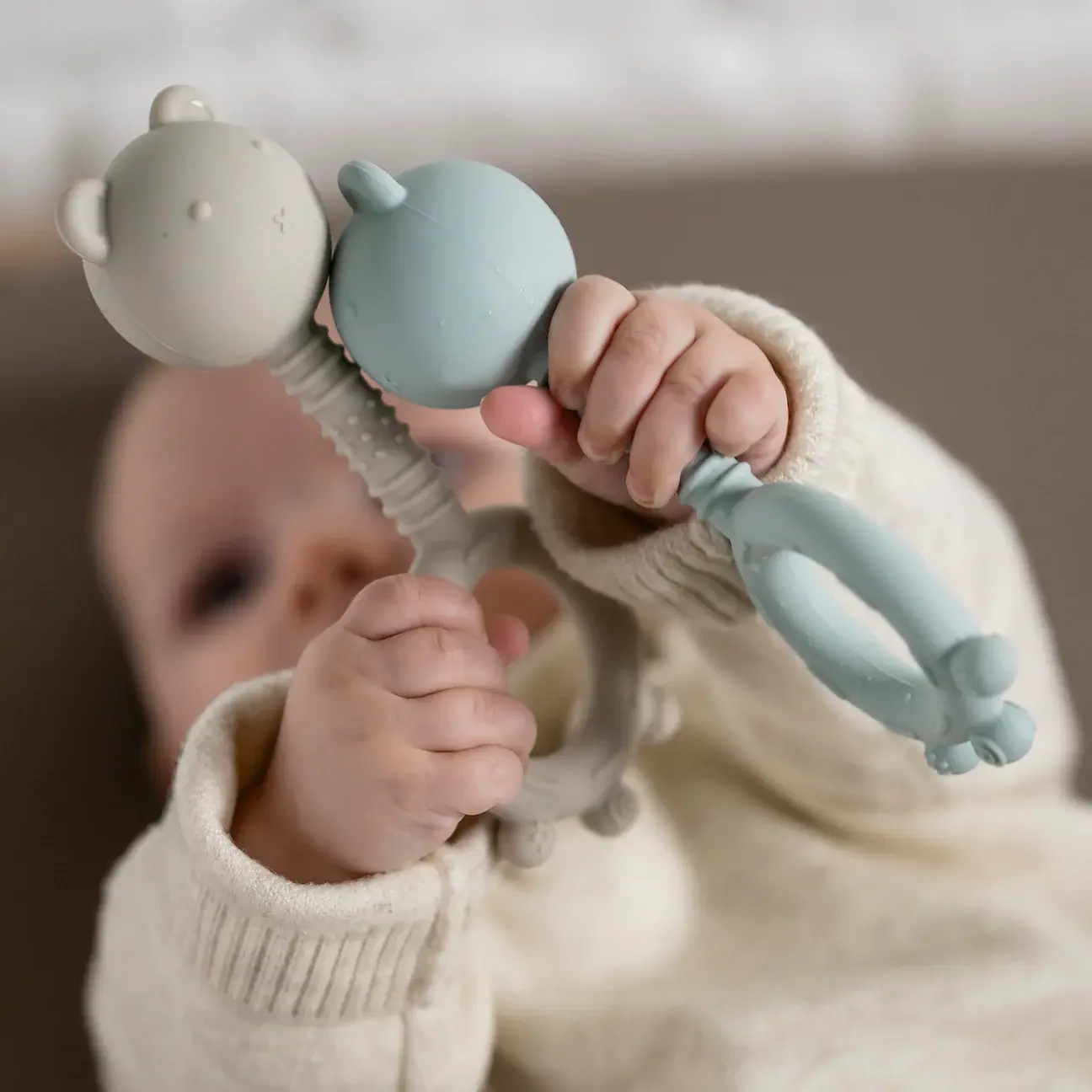 - Anneau de dentition en silicone avec surface rugueuse pour masser les gencives et soulager les maux de dents