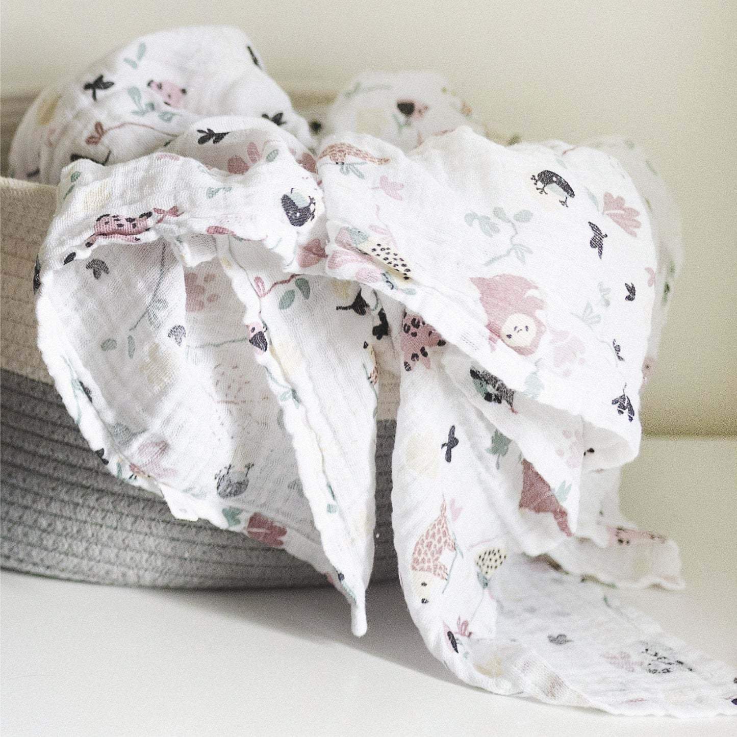 S'inscrireCouverture d'emmaillotage de mousseline 100% coton. Pré-lavée et ultra légère, cette couverture multi-usages en mousseline est de manière à permettre à l’air de circuler de façon optimale.