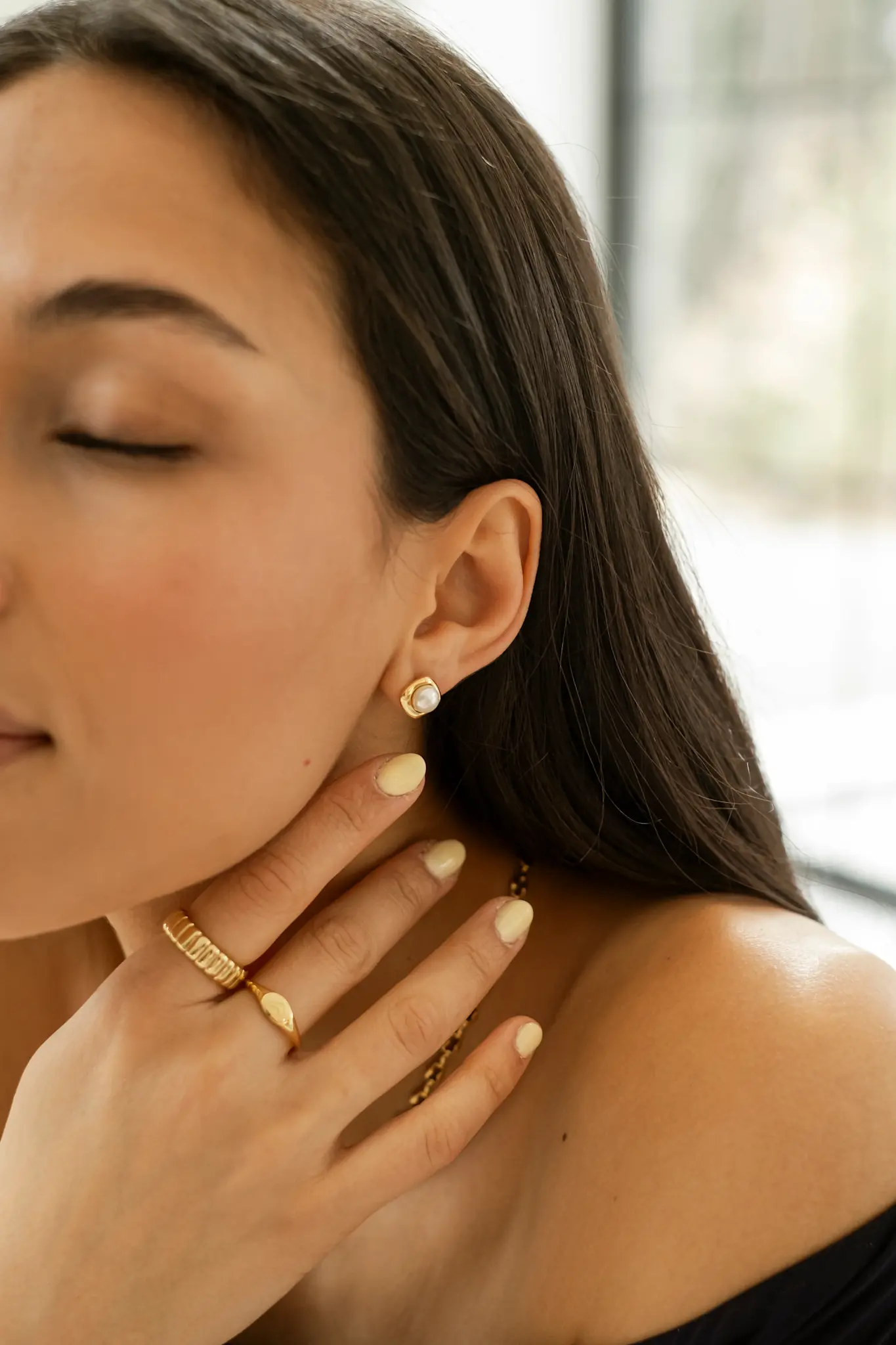 Matériaux : Vermeil (argent sterling 925, plaqué or 18K - 1,5 micron) et perle synthétique