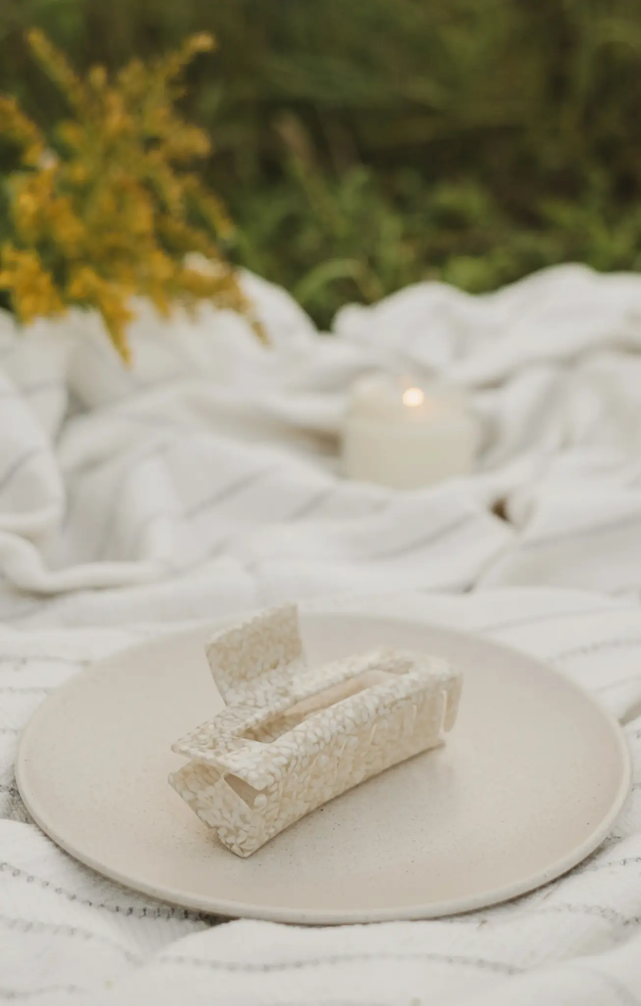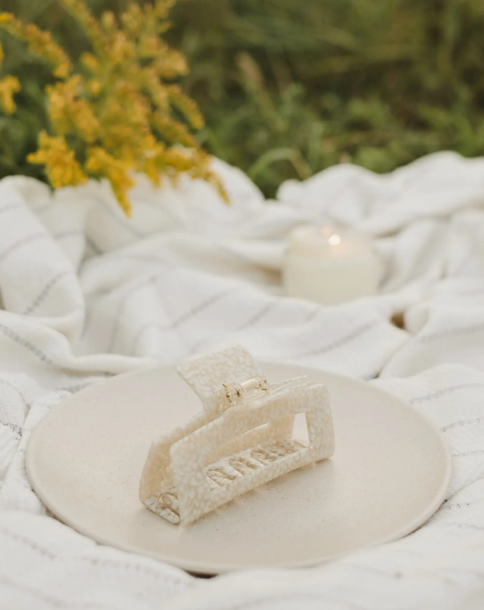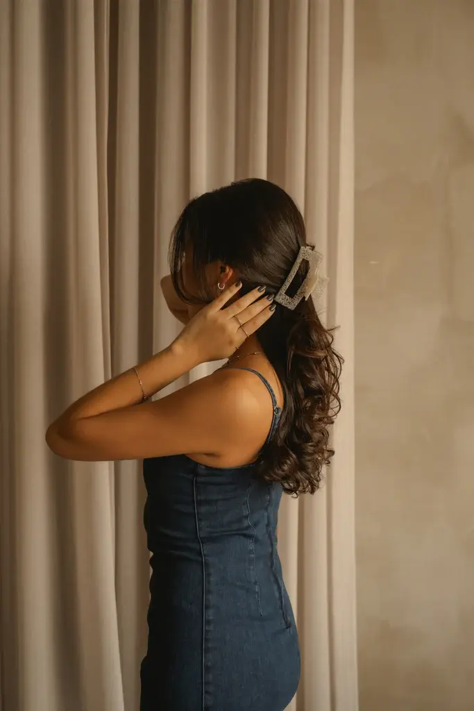 Notre pince à cheveux Miranda est parfaite pour les cheveux mi-longs à longs, normaux ou épais.