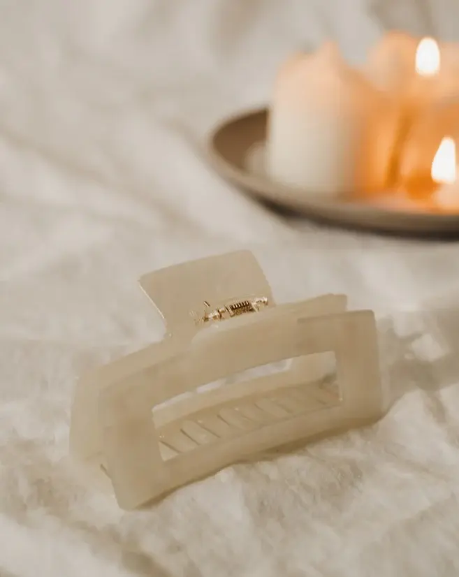 Notre pince à cheveux Lucie est parfaite pour les cheveux mi-longs à longs, normaux ou épais.