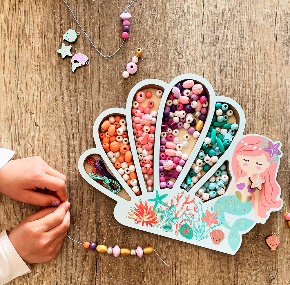 S'inscrireUn coffret original en forme de sirène contenant de jolies perles aux couleurs pastelles pour créer de magnifiques bijoux: colliers, bracelets...