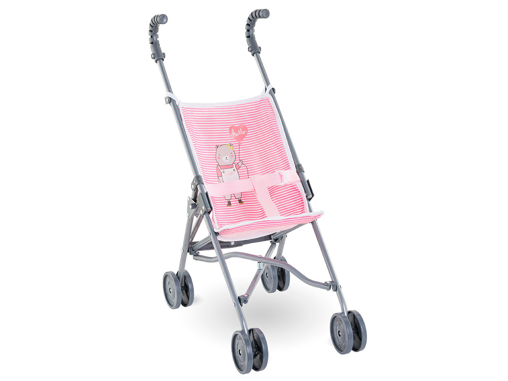La toile couleur rose de cette poussette porte un joli détail : une sérigraphie "Ourson avec ballon".