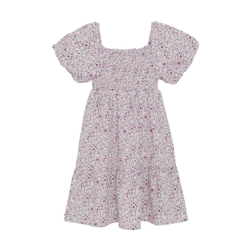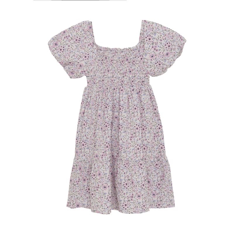 ROBE NID D'ABEILLE FLEURI - CRÈME