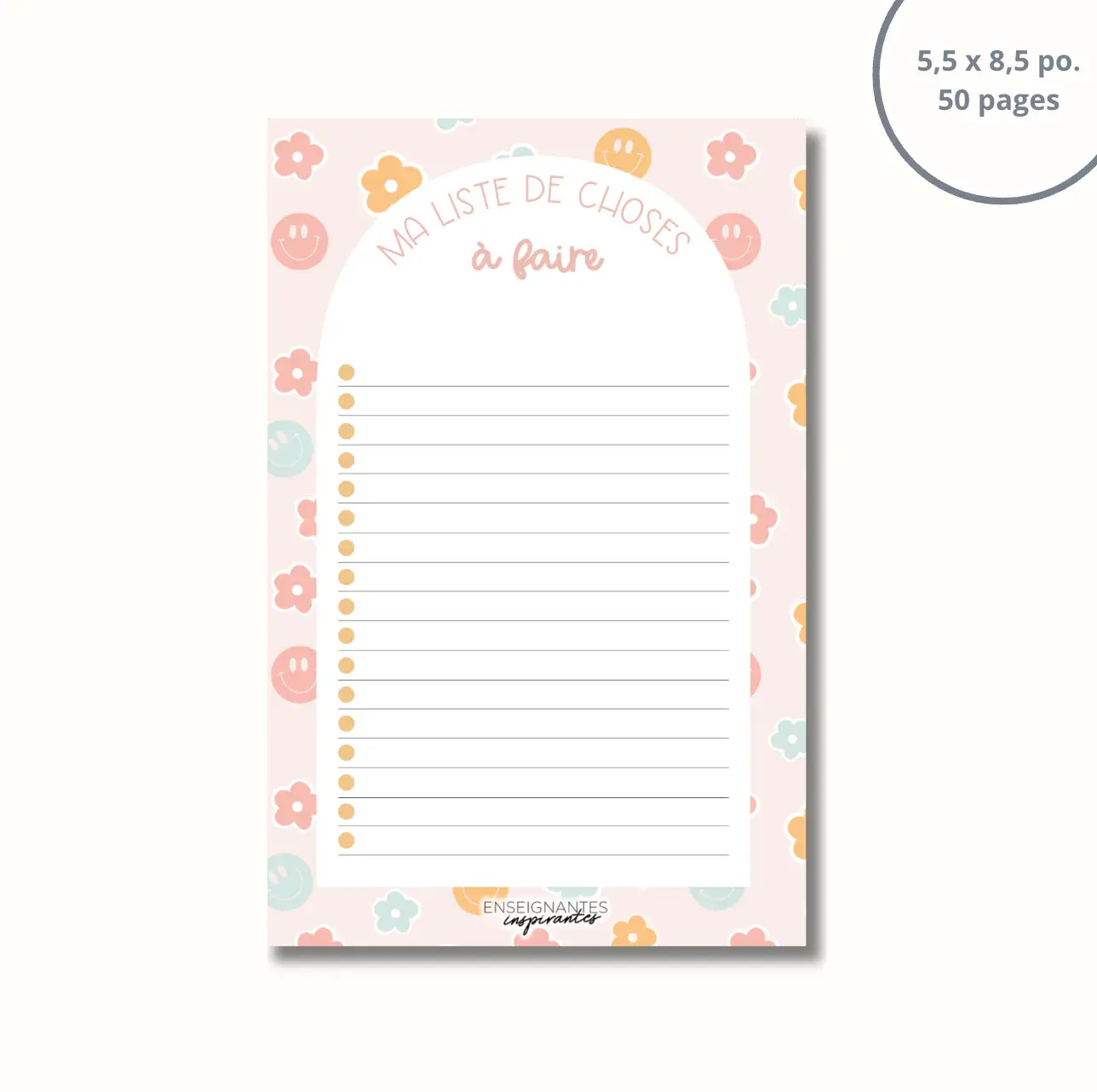 BLOC-NOTE : MA LISTE DE CHOSES À FAIRE - SOURIRES ET FLEURS PASTELS