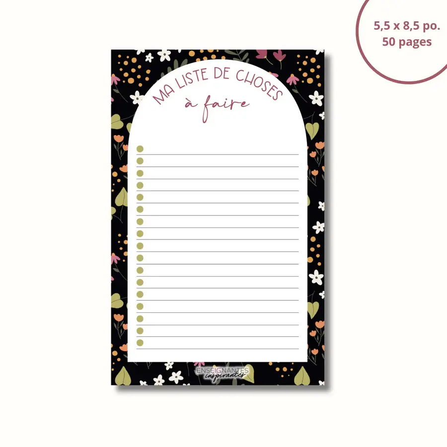 BLOC-NOTE : MA LISTE DE CHOSES À FAIRE - NOIR FLEURI
