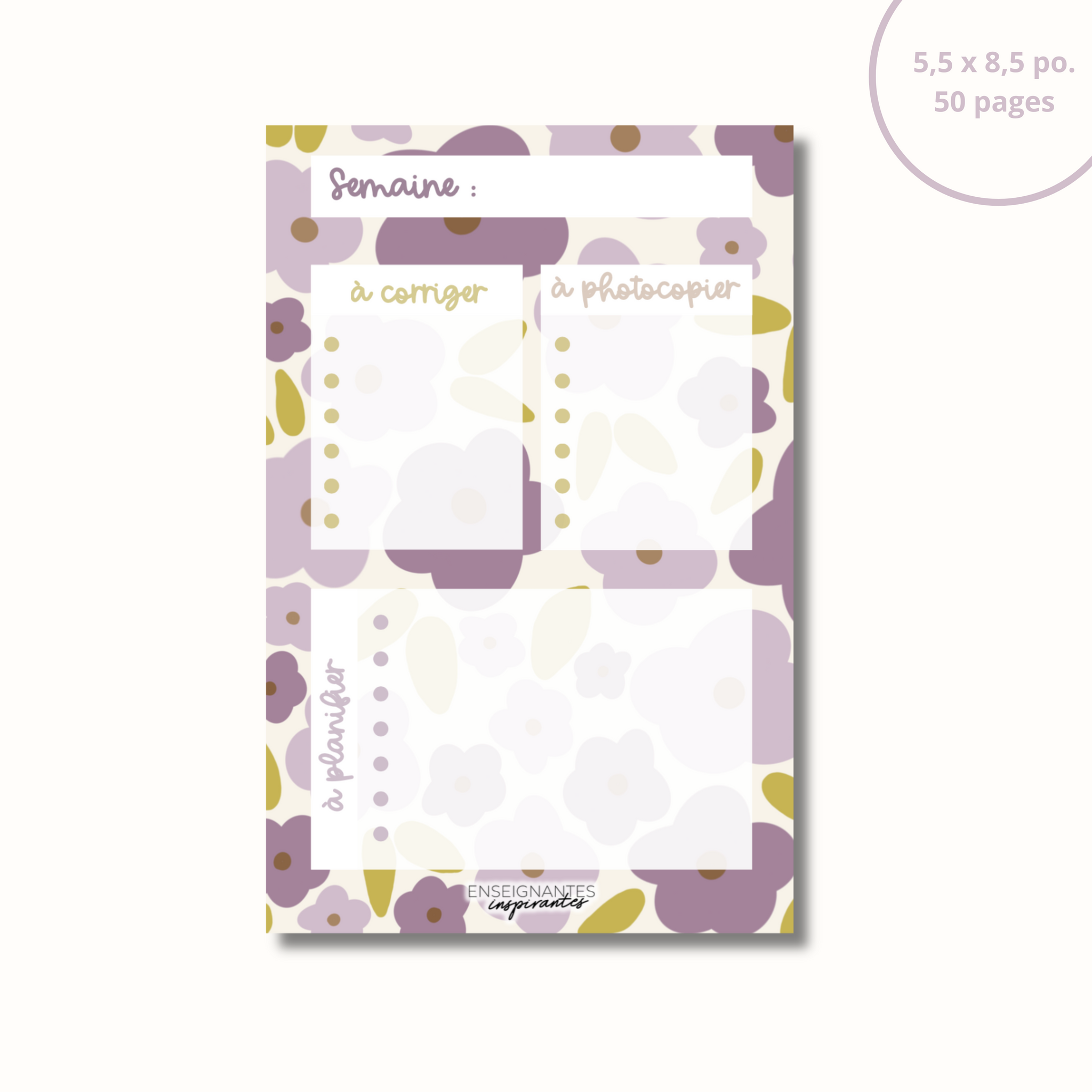 - Une case pour la semaine, la correction, la planification et les photocopies