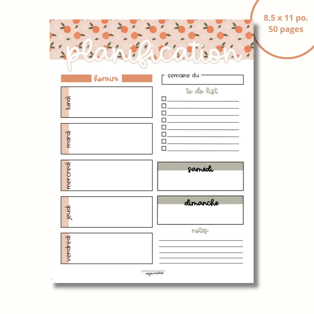 BLOC-NOTE PLANIFICATION HEBDOMADAIRE - CLÉMENTINES