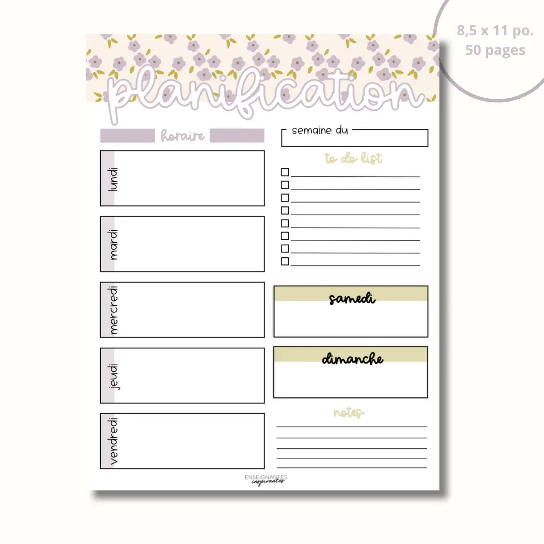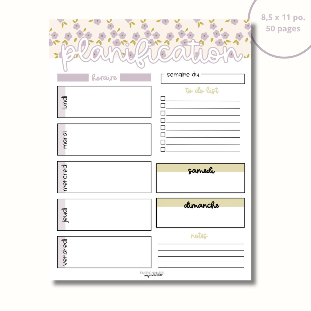 BLOC-NOTE PLANIFICATION HEBDOMADAIRE - LAVANDE