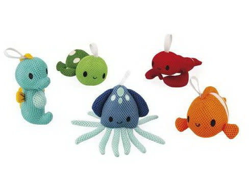 Il vous suffit de les mouiller et d’ajouter un peu de savon pour les faire mousser et laisser les enfants s'occuper seuls de la toilette, car elles sont parfaitement adaptées aux mains des plus petits. Nos petits animaux marins possèdent une attache au dessus de leur tête pour faciliter le séchage.