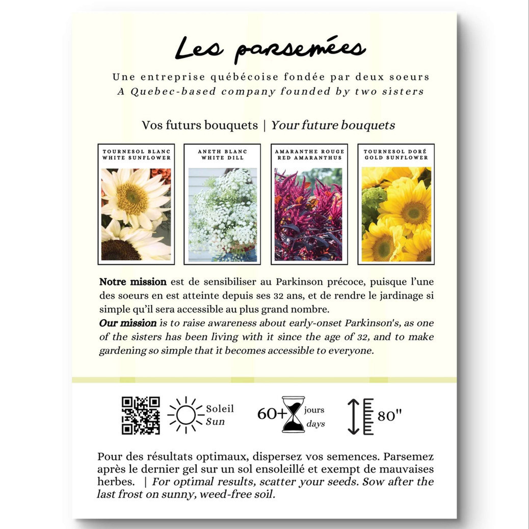 Pour les jardiniers pressés d’ajouter de la couleur et de la vie à leur jardin, notre agencement 60 jours est la solution idéale. Ce mélange unique de semences rassemble quatre variétés soigneusement sélectionnées pour leur croissance rapide, leur complémentarité visuelle et leur attrait pour la biodiversité.