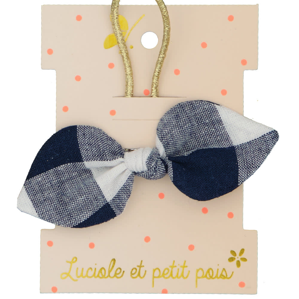 S'inscrire- Ravissant élastique doré surmonté d'un nœud "carreaux marine". Parfait pour faire de jolies queues de cheval, les demoiselles aimeront aussi le porter au poignet.