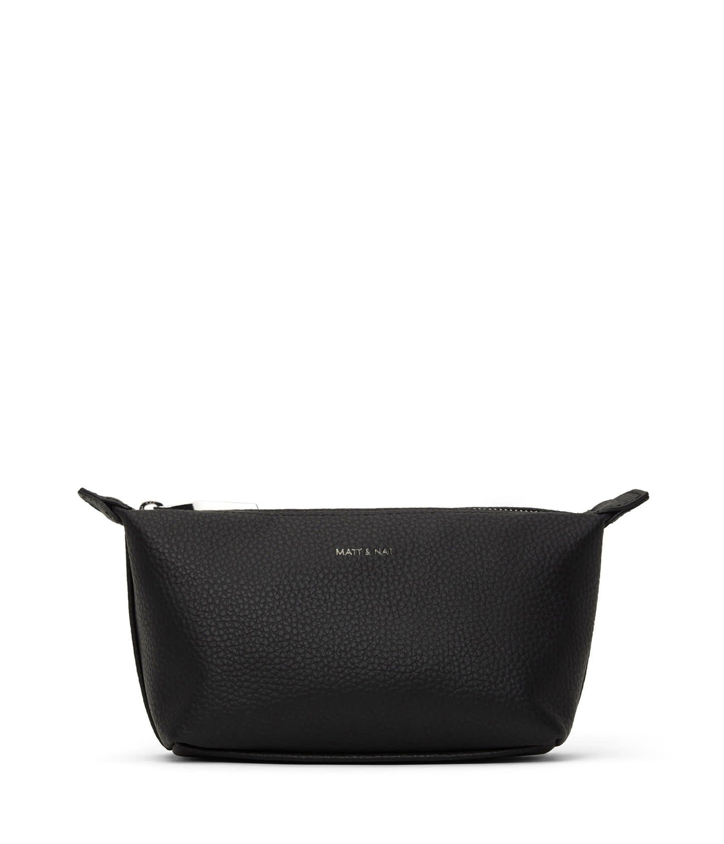 S'inscrireSac à cosmétiques avec fermeture éclair en métal sur le dessus et une languette de chaque côté.