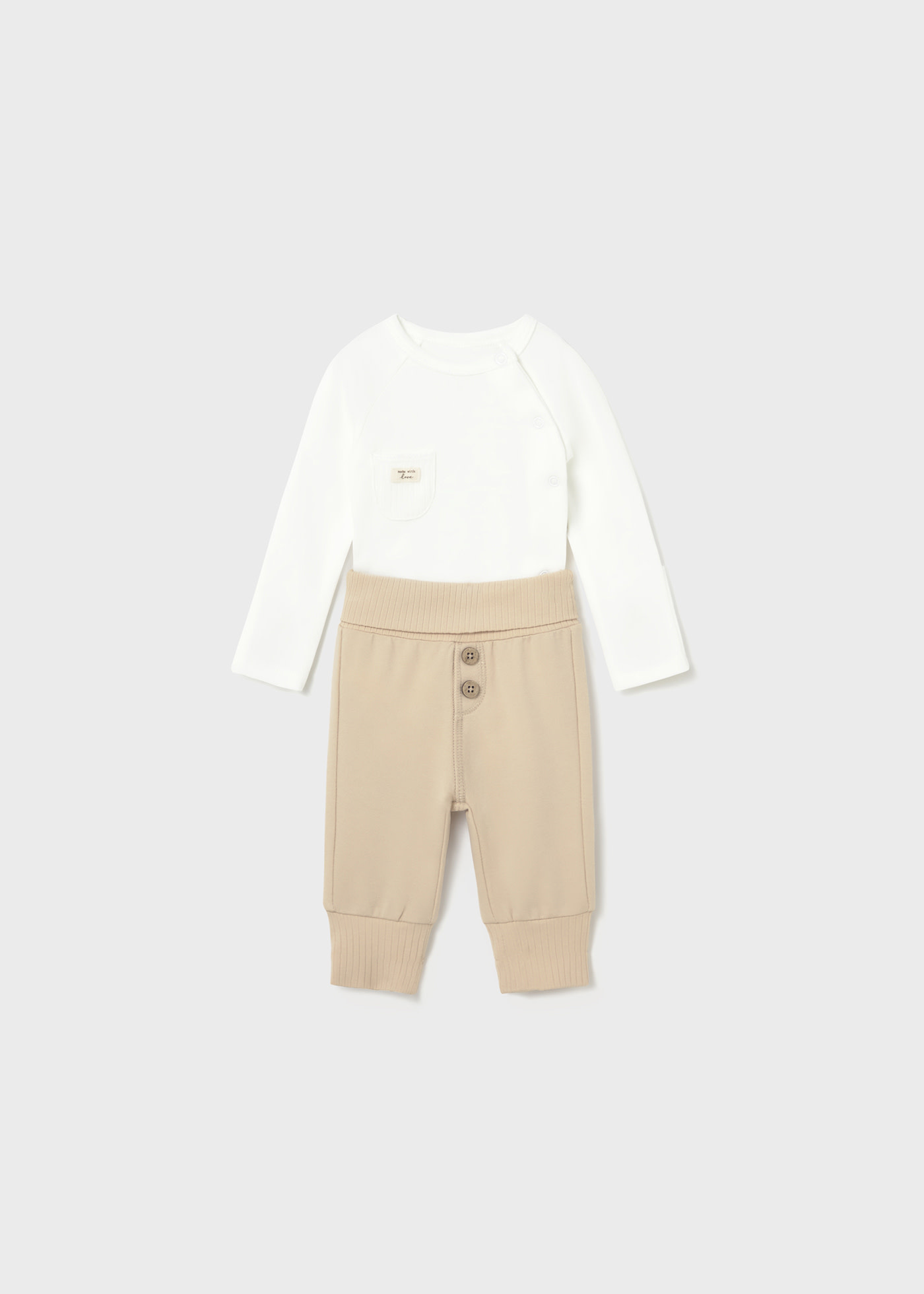S'inscrireBody à manches longues pour nouveau-né. Col rond. Fermeture latérale par boutons-pression. Fermeture à bouton-pression dans l'entrejambe. Éléments décoratifs: poché décorative. Pantalon pour nouveau-né. Taille élastiquée. Éléments décoratifs: boutons décors. Bas extensible pour s'adapter à la croissance de votre bébé. Ceinture extensible qui s'adapte à la croissance de votre bébé.