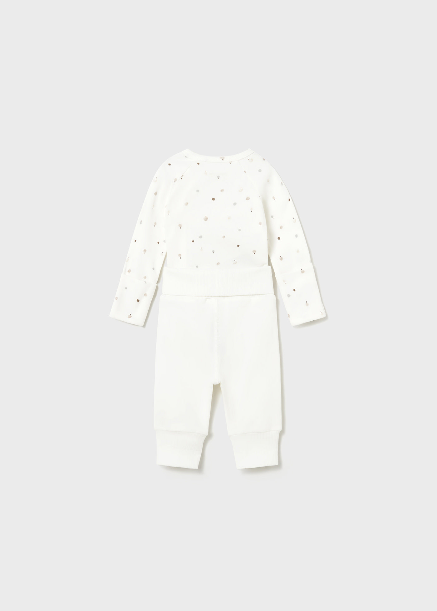 Body à manches longues pour nouveau-né. Col rond. Fermeture latérale par boutons-pression. Fermeture à bouton-pression dans l'entrejambe. Pantalon pour nouveau-né. Taille élastiquée. Bas extensible pour s'adapter à la croissance de votre bébé.