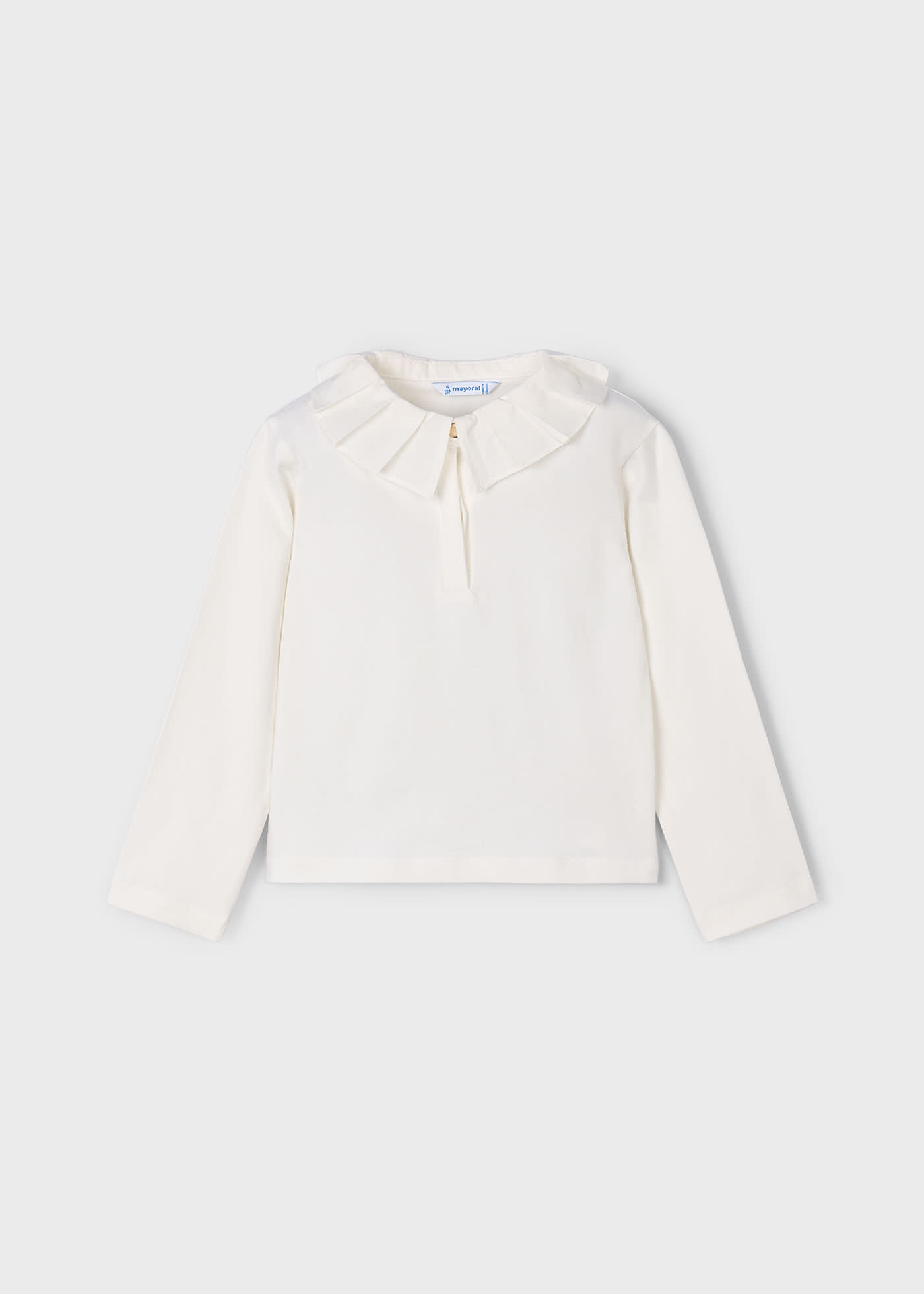 POLO MANCHES LONGUES À COL PLIS - BLANC