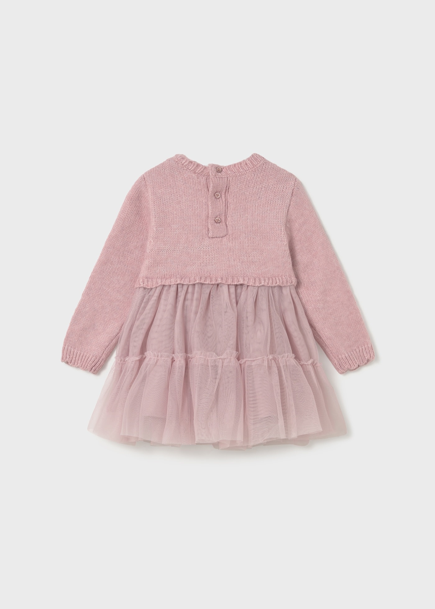 ROBE BI-MATIÈRE TRICOT ET TULLE - QUARTZ