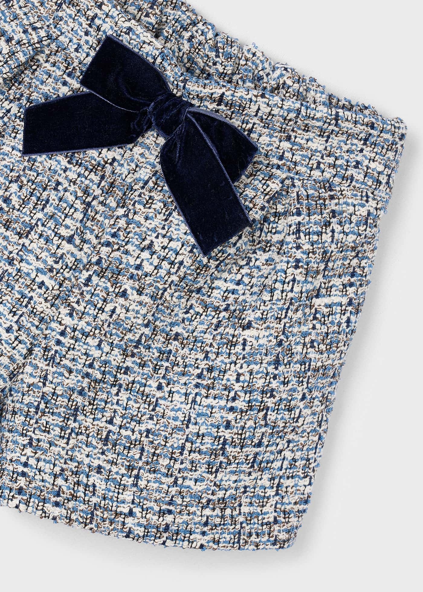 Short pour fille. Ceinture élastique réglable avec boutons à l'intérieur de la ceinture pour un meilleur ajustement. Modèle avec pinces. Éléments décoratifs: nœud.