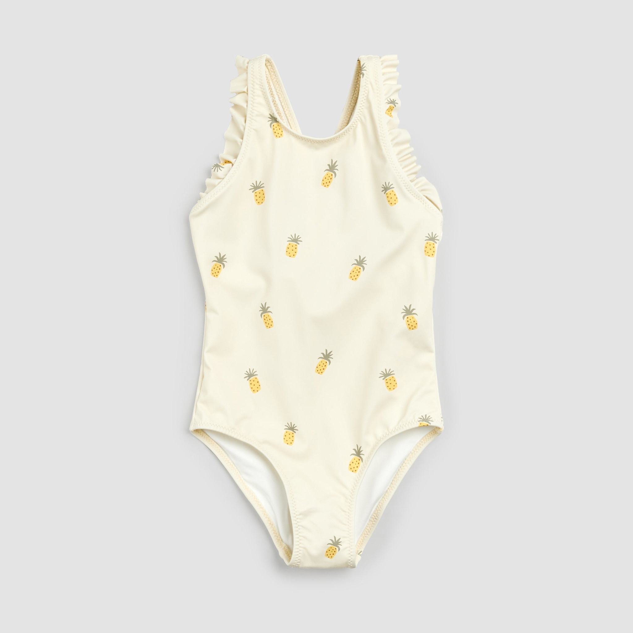 S'inscrireCe joli costume de bain blanc est parfait pour siroter une barbotine au bord de la piscine. Avec son imprimé ananas, il a des airs de vacances et se coordonne avec les modèles disponibles pour les frères. Les bretelles croisées offrent un maintien confortable et sont agrémentées d'une bordure volantée. Fabriqué en nylon recyclé et en élasthanne extensible, le maillot est très souple et possède une protection solaire UPF 50+ intégrée.