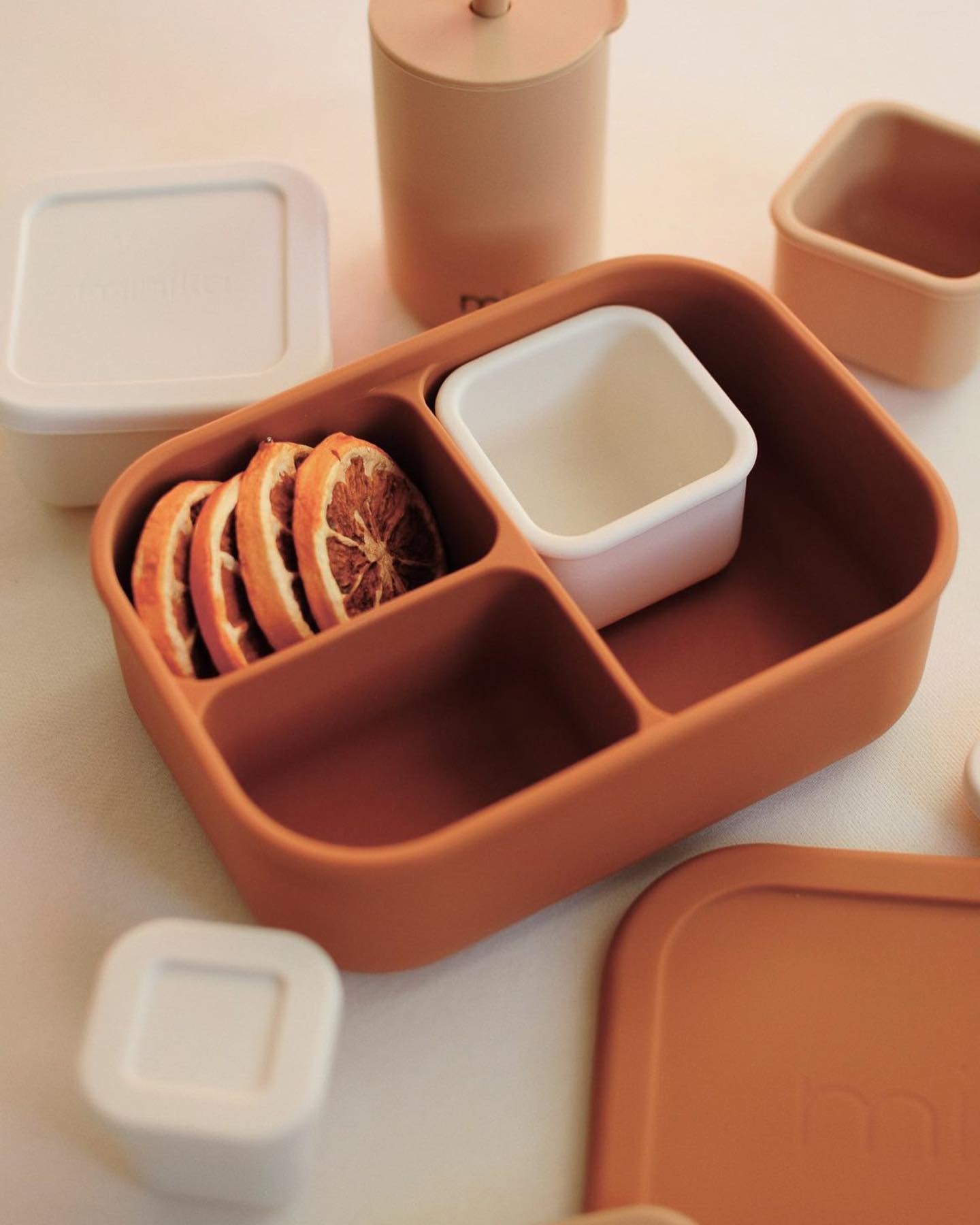 • Boîte bento avec couvercle refermable. Silicone alimentaire sans BPA. Laver avec du savon et un chiffon mouillé ou au lave-vaisselle. Allant au micro-ondes et au congélateur. Idéal pour transporter les diner dans la boîte à lunch.