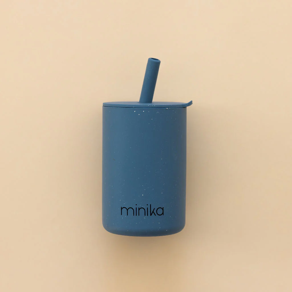 MINIKA - VERRE AVEC PAILLE ET COUVERCLE - INDIGO