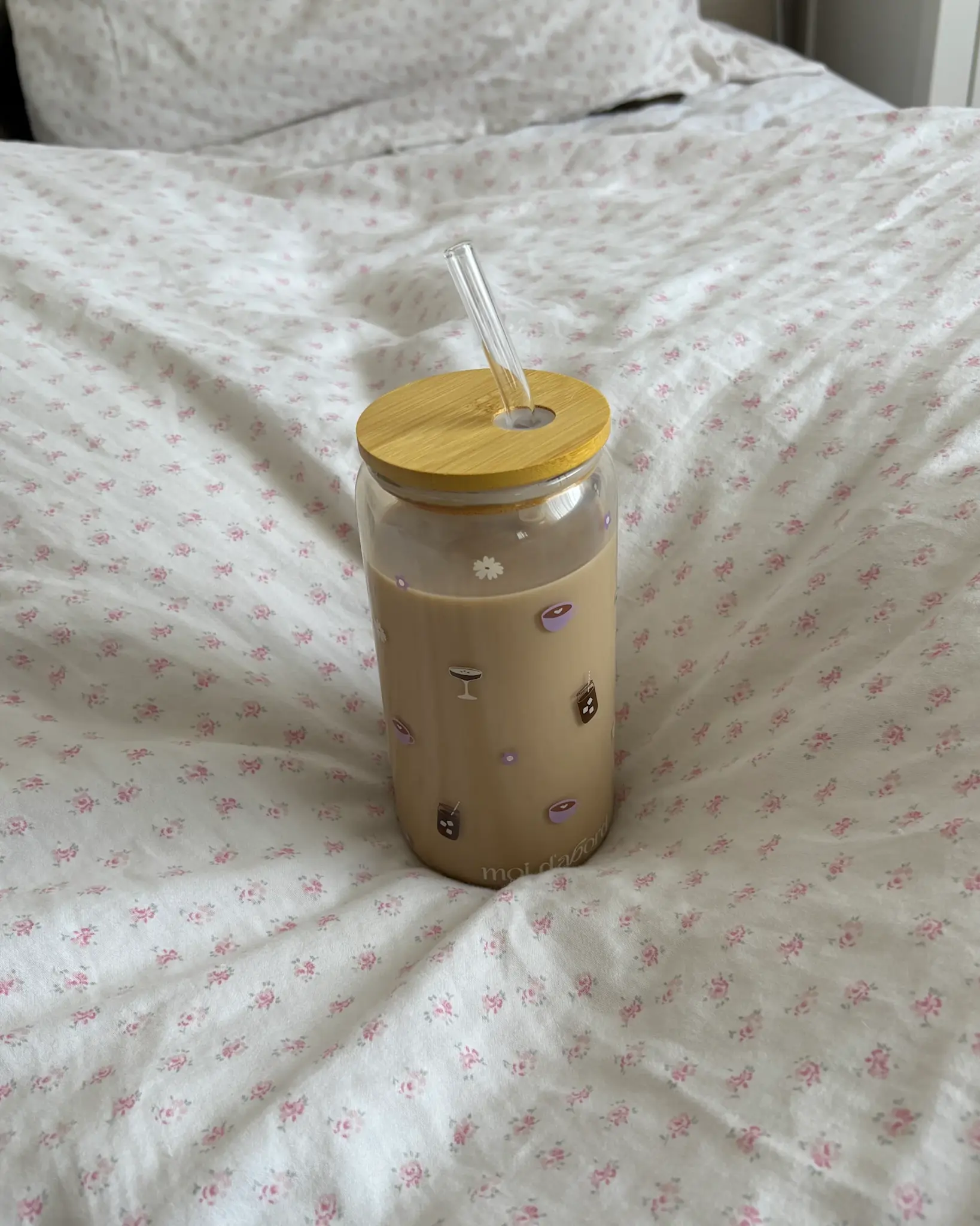 S'inscrireTumbler en verre au style doux et minimaliste, idéal pour t’accompagner dans tes matins pressés ou tes moments détente