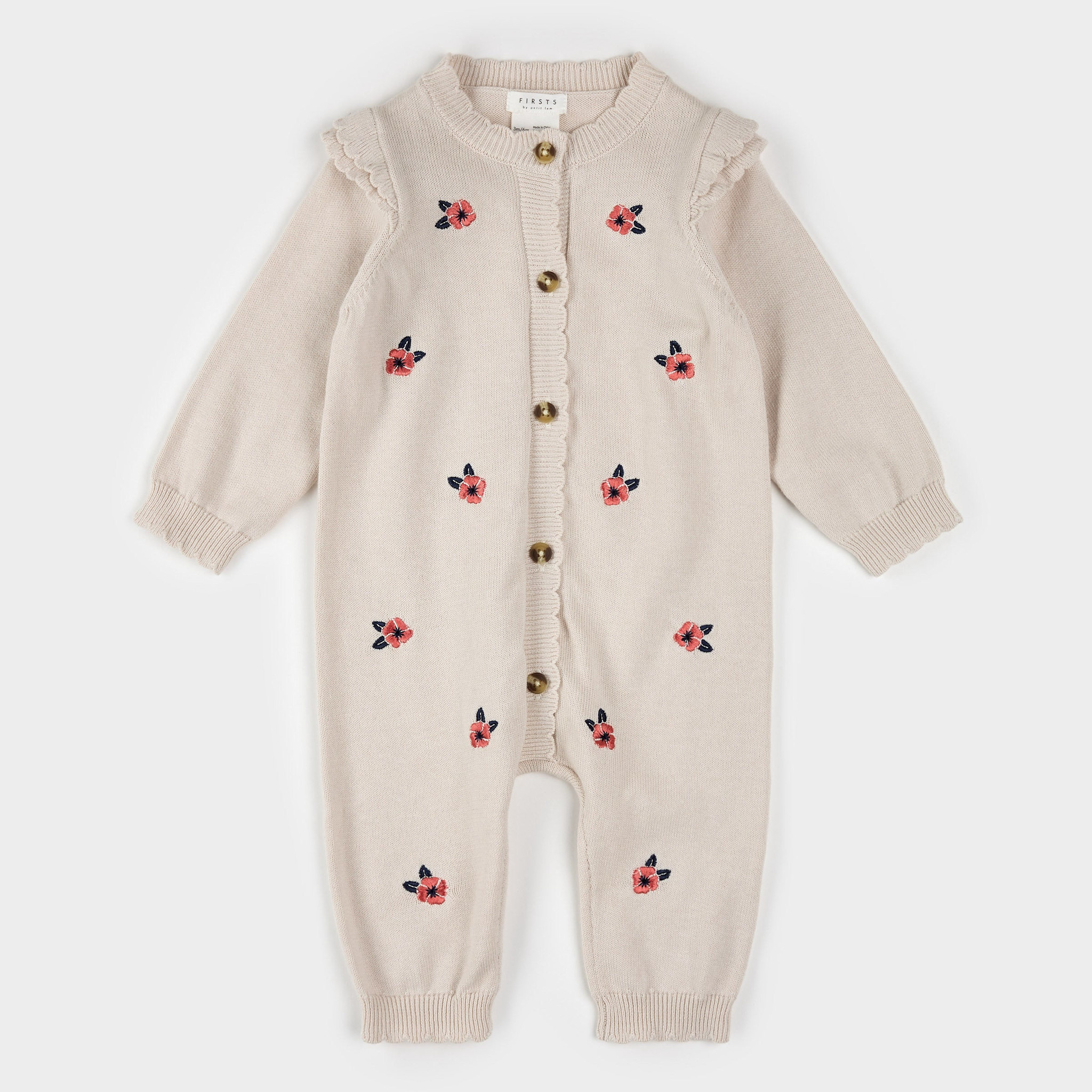 COMBINAISON EN TRICOT AVEC BRODERIES DE COQUELICOTS - BEIGE