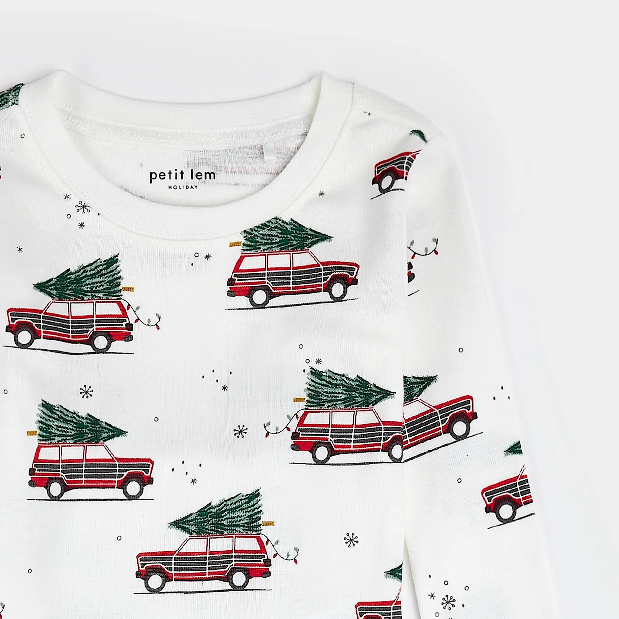 PYJAMA 2 PIÈCES IMPRIMÉ VOITURES FESTIVES - BLANC
