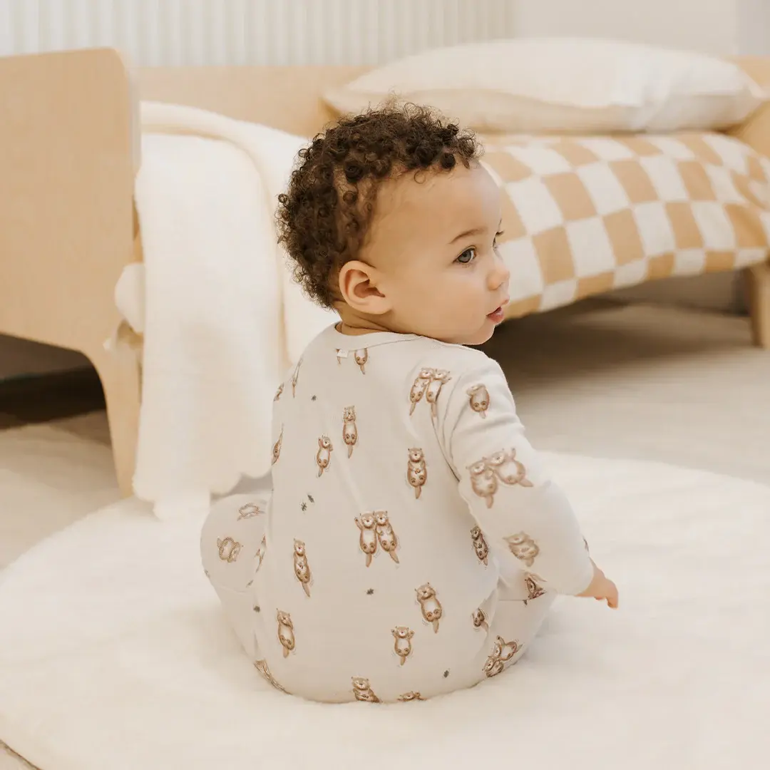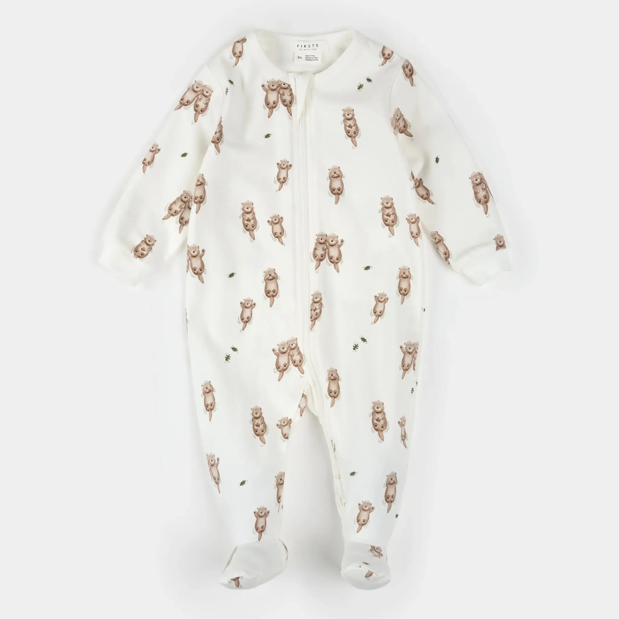 S'inscriredormeuse « loutrageusement » craquante gardera bébé bien confortable jusqu'au matin. Fabriquée en jersey de coton biologique, elle est douce pour sa peau délicate et offre toute la souplesse nécessaire pour bouger librement. Conçue pour faciliter la vie des parents, elle est dotée de pieds intégrés pour garder les petits orteils au chaud, de poignets côtelés pour laisser les mains libres, et d'une fermeture éclair double sens pour des changements rapides et faciles.