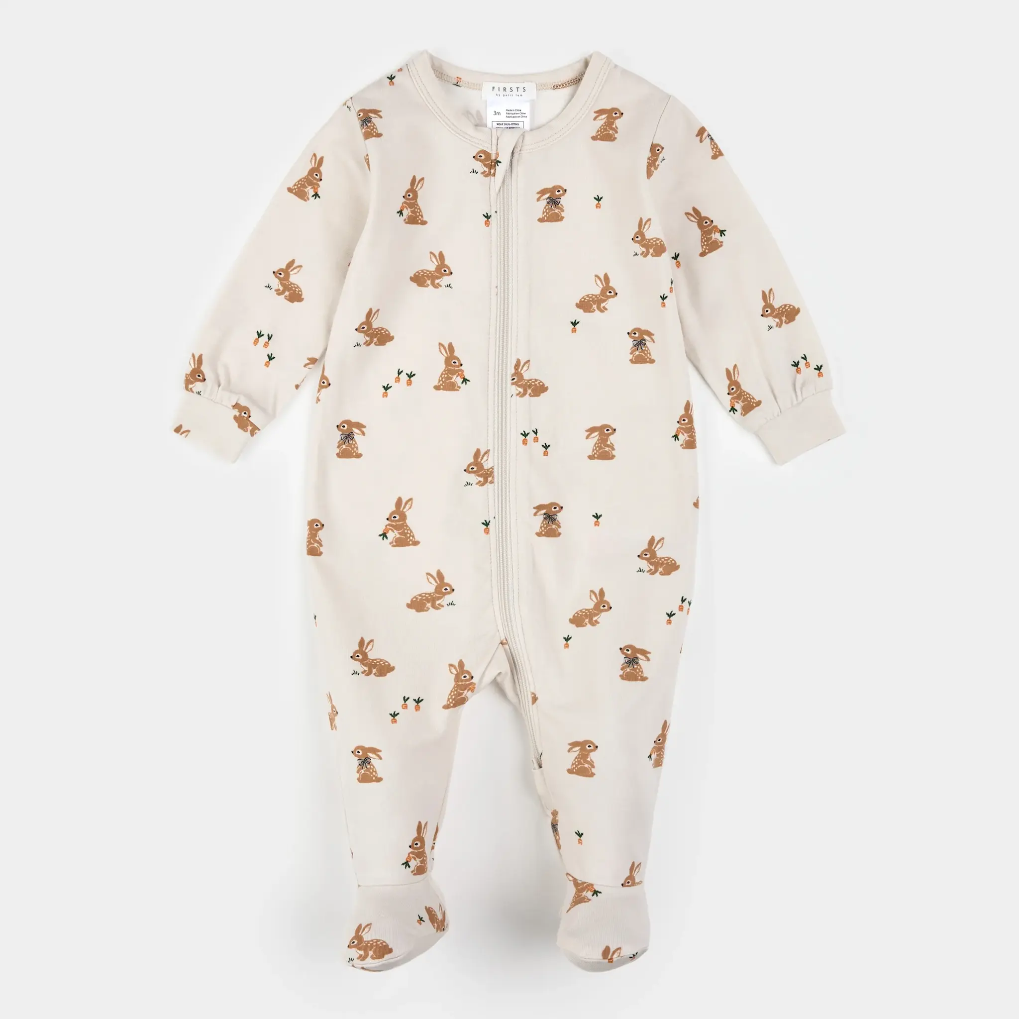 PYJAMA À PATTES IMPRIMÉ LAPIN - BEIGE