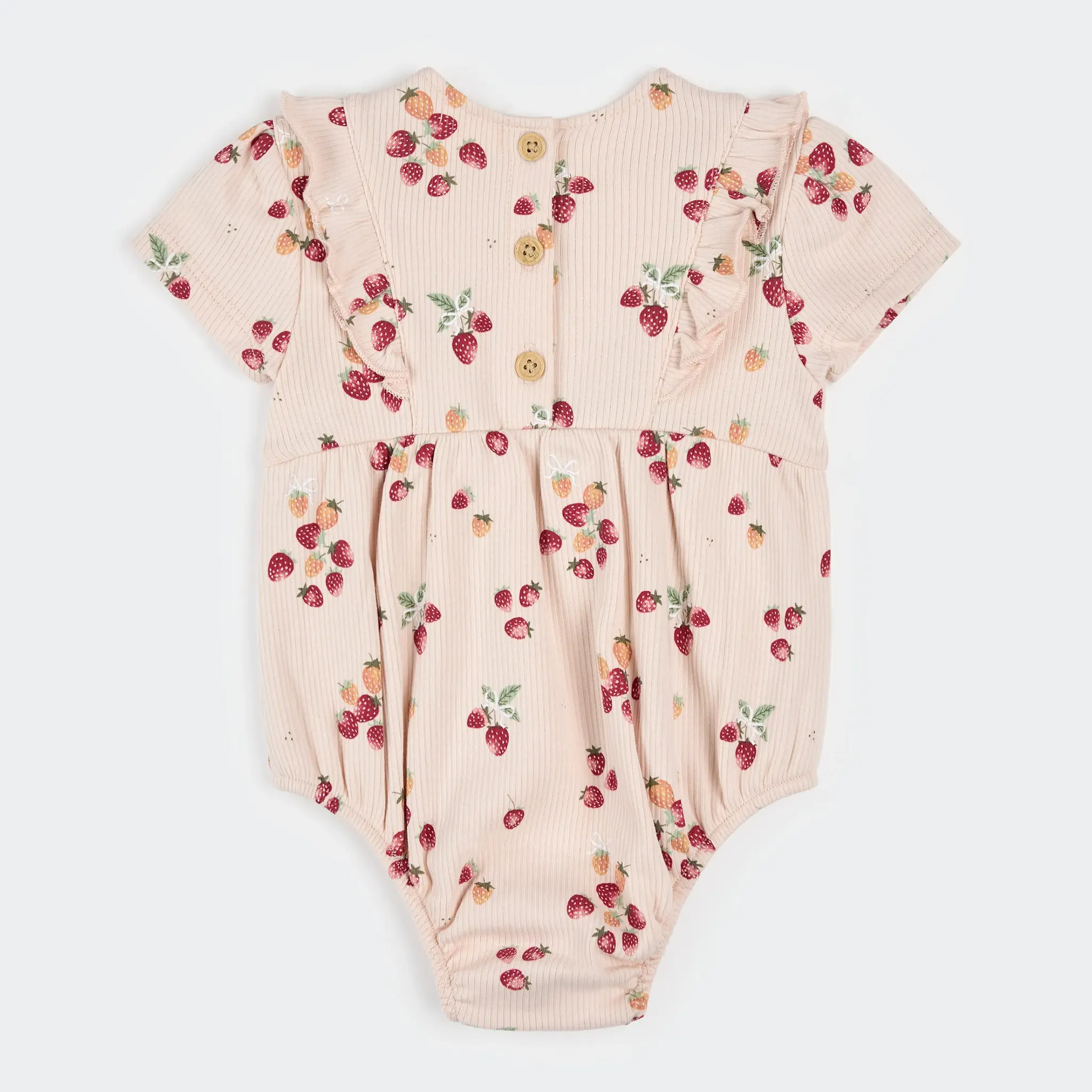 PETIT LEM - ROMPER BULLE CÔTELÉ À IMPRIMÉ FRAISES - ROSE PÂLE