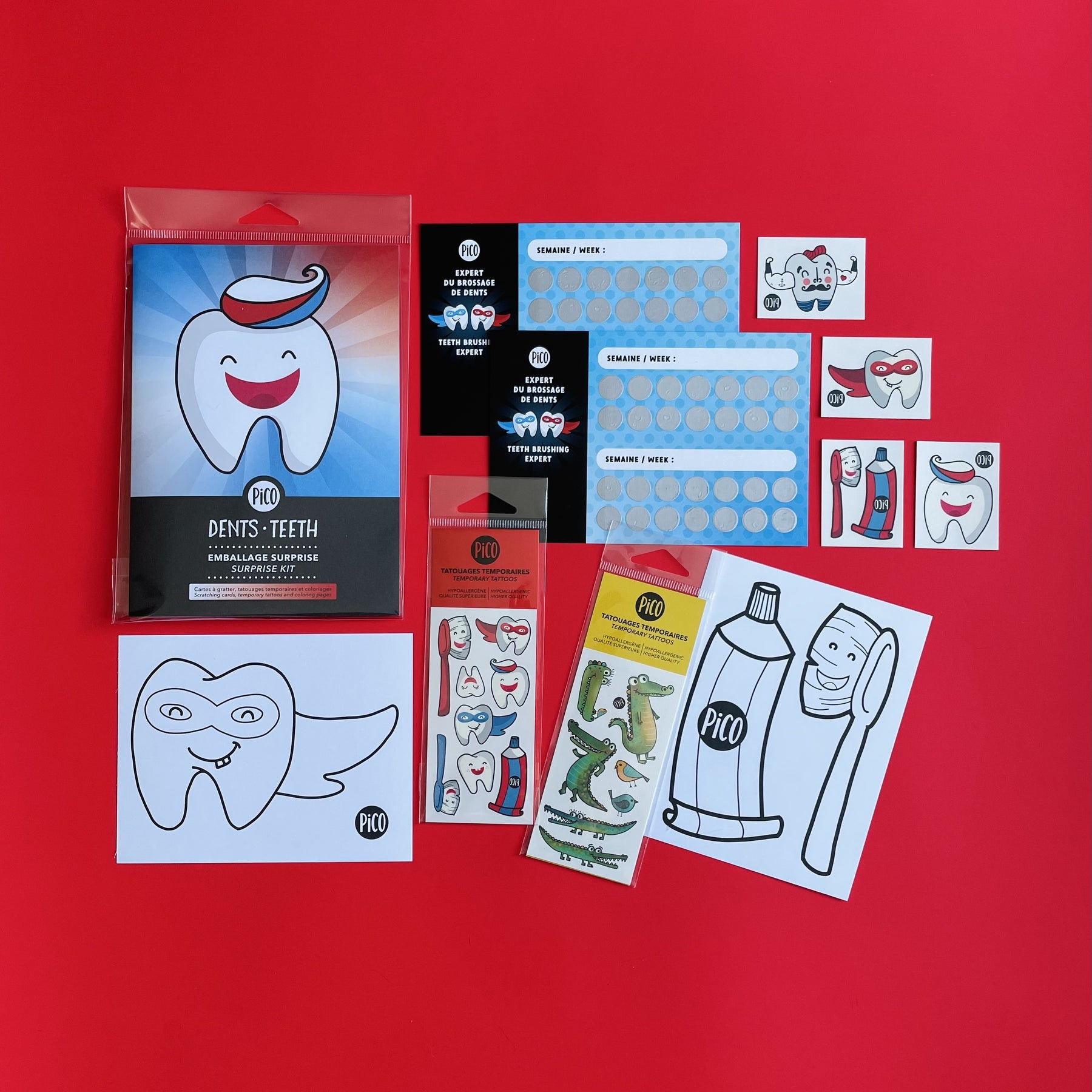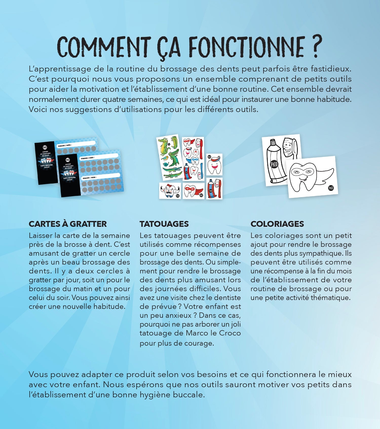 2 Cartes à gratter Expert du brossagLe design des tatouages temporaires est fait au Québec. - L'impression des tatouages est réalisée aux États-Unis.