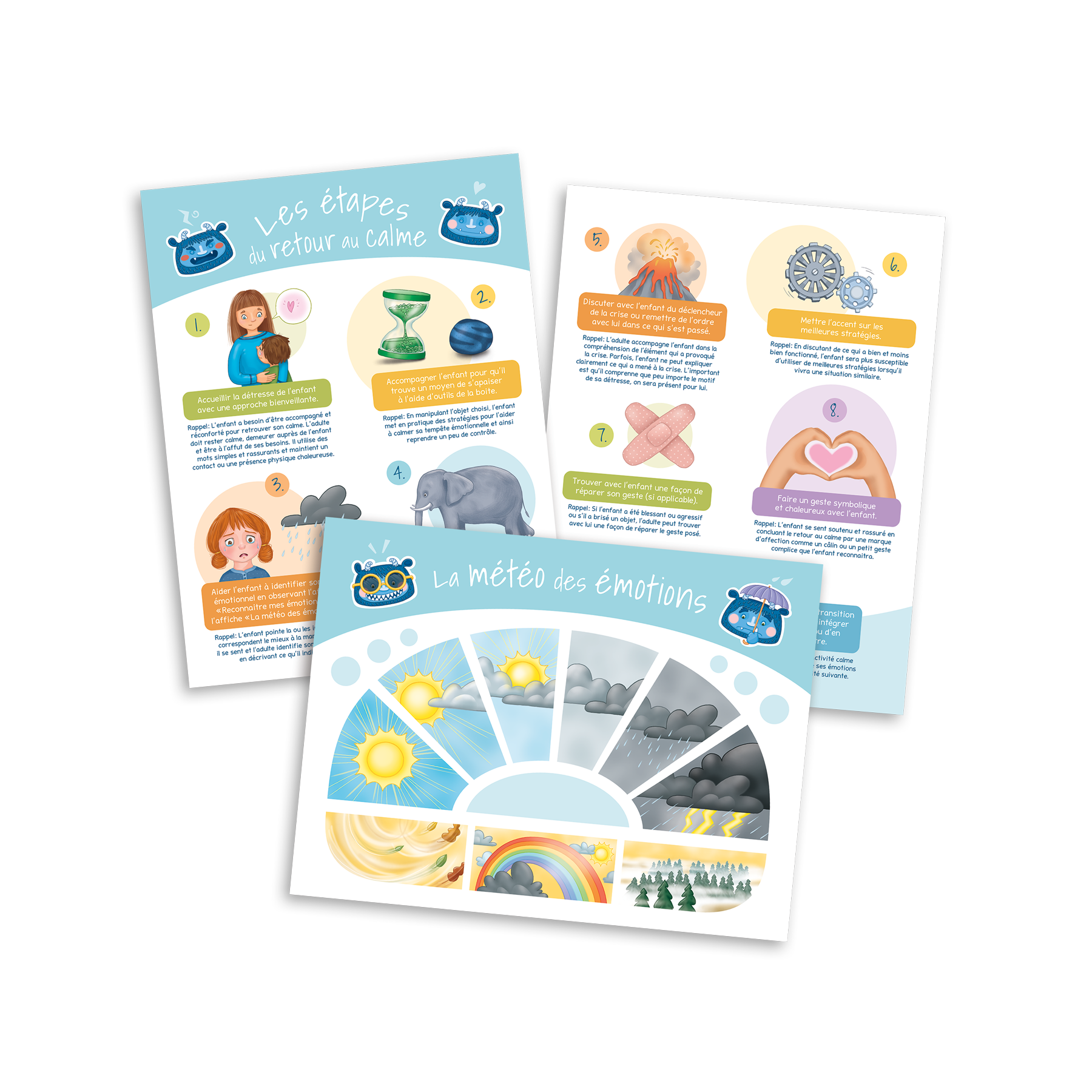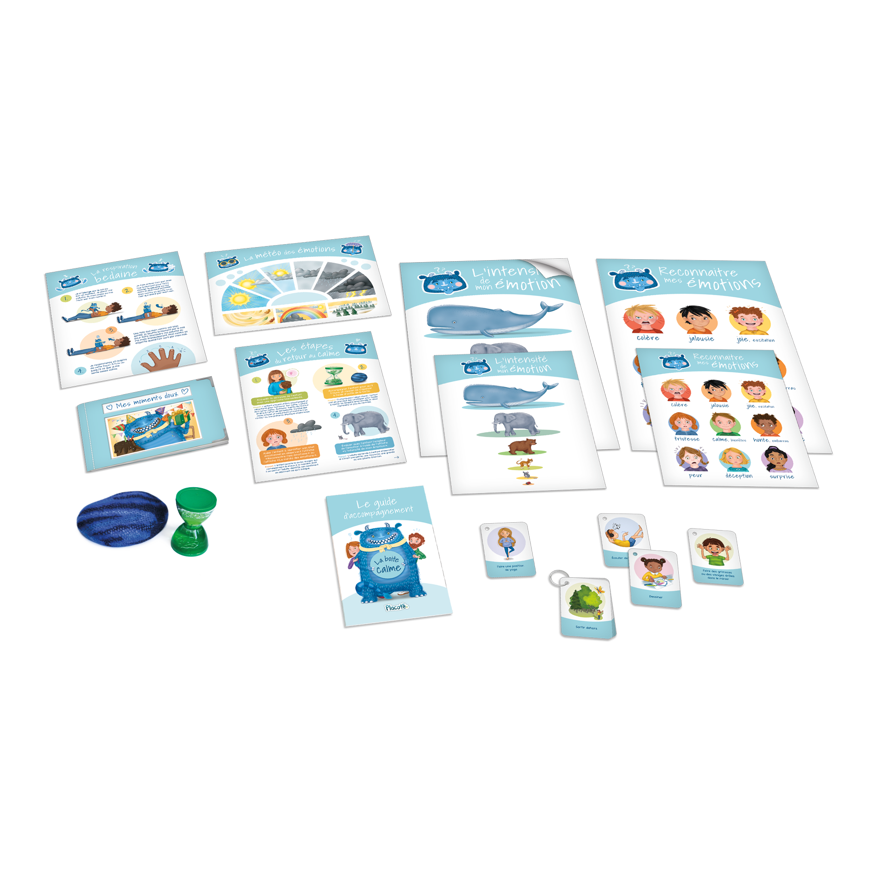 Quelle chance! Calmos le monstre souhaite partager avec toi les fabuleux outils qu’il utilise pour calmer ses tempêtes d’émotions! Découvre le contenu de la boite avec lui.