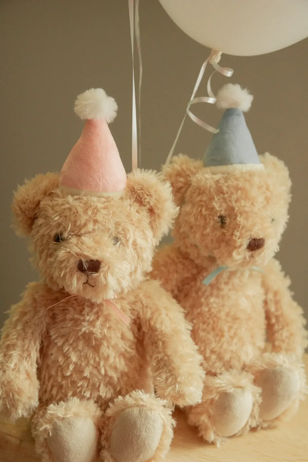 S'inscrireDouce et attachante avec son mignon chapeau d'anniversaire bleu ciel, la peluche Arthur l'ours deviendra rapidement le compagnon préféré de votre enfant!