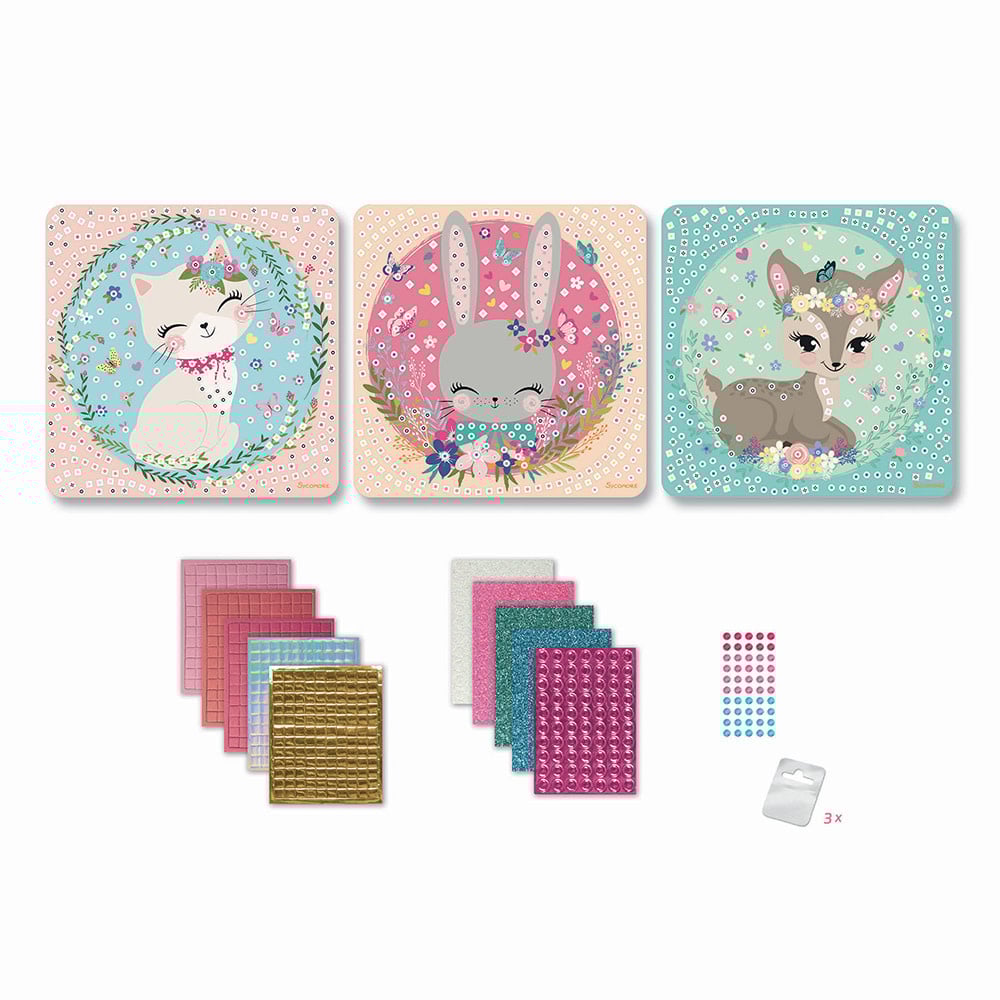 S'inscrireFacile et simple d'utilisation, il suffit de coller les petites mousses et joyaux étincelants sur les graphismes correspondants et le tour est joué! Réalise 3 magnifiques mosaïques sur le thème des animaux mignons. Les 3 supports d'accroche muraux permettent d'afficher les tableaux dans ta chambre ou bien de les offrir à tes amis et ta famille.