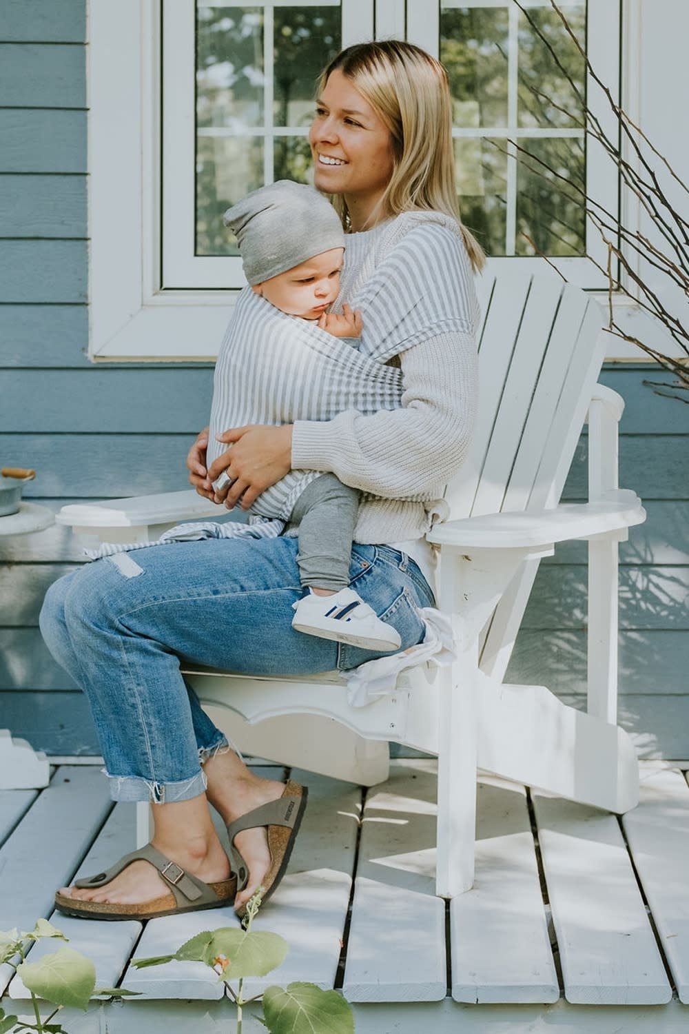 ÉCHARPE DE PORTAGE - LIGNÉ GRIS PÂLE ET BLANC