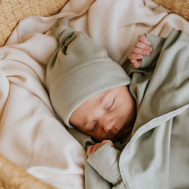 Notre bonnet nouveau-né en bambou sauge 0-3 mois. Le rib permet une plus grande extensibilité pour permettre à votre bébé de porter notre bonnet dès sa naissance et ce jusqu’à ses 3 mois.